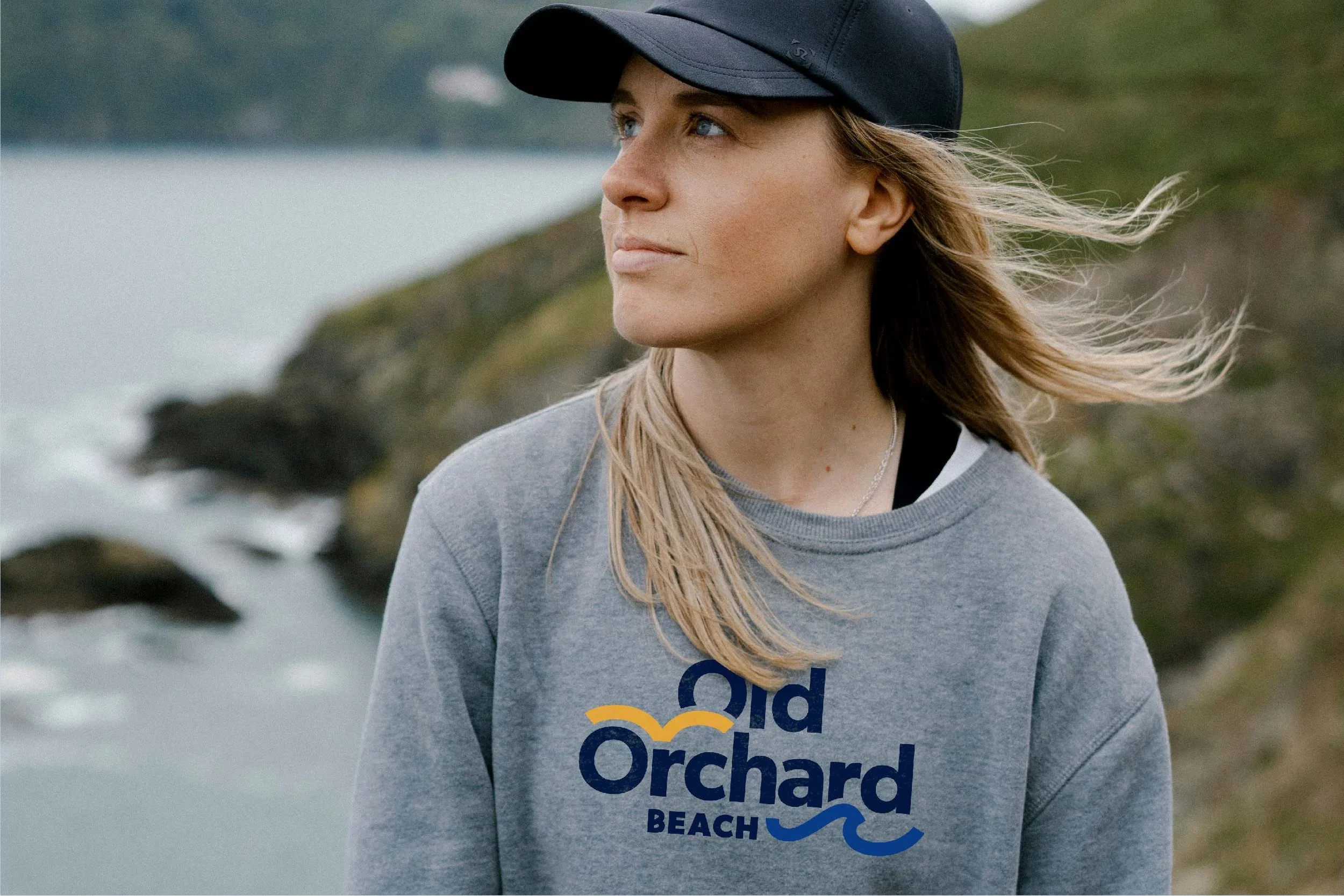 Logo design concept for Old Orchard Beach, home to a seven-mile stretch of pristine beaches and area landmarks.